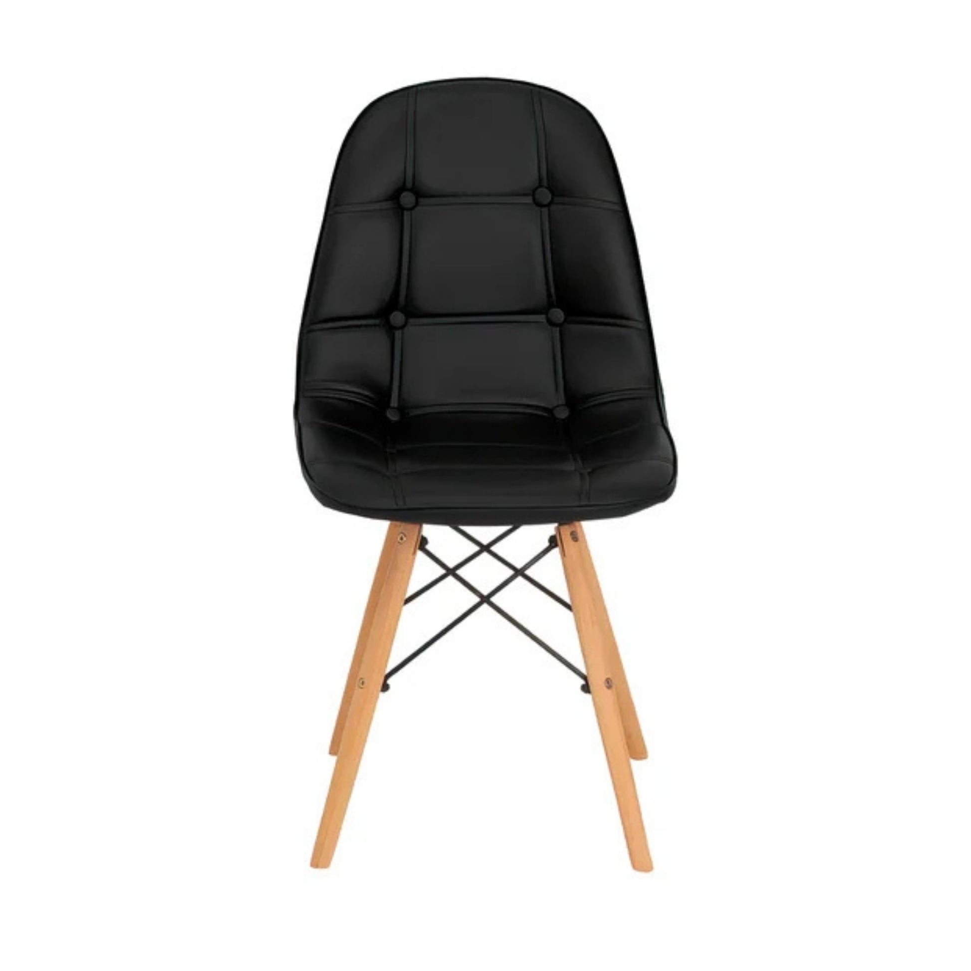 Dale un toque moderno y elegante a tus espacios con esta silla estilo Eames tapizada, diseñada para combinar comodidad, estilo y funcionalidad. Su asiento acolchado con acabado en piel sintética y detalle capitonado tipo botones aporta una apariencia sofisticada, mientras que su respaldo curvado brinda mayor confort durante el uso.